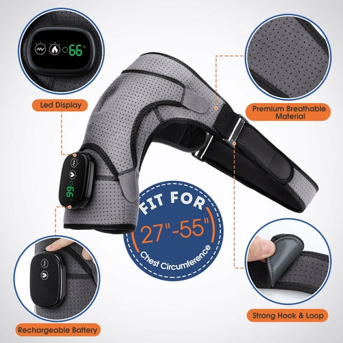 Heating Massage Shoulder Brace LED Display Vibration Massage Brace Support Heat Therapy Arthritis Injury Pain Relief Strap Wrap Belt